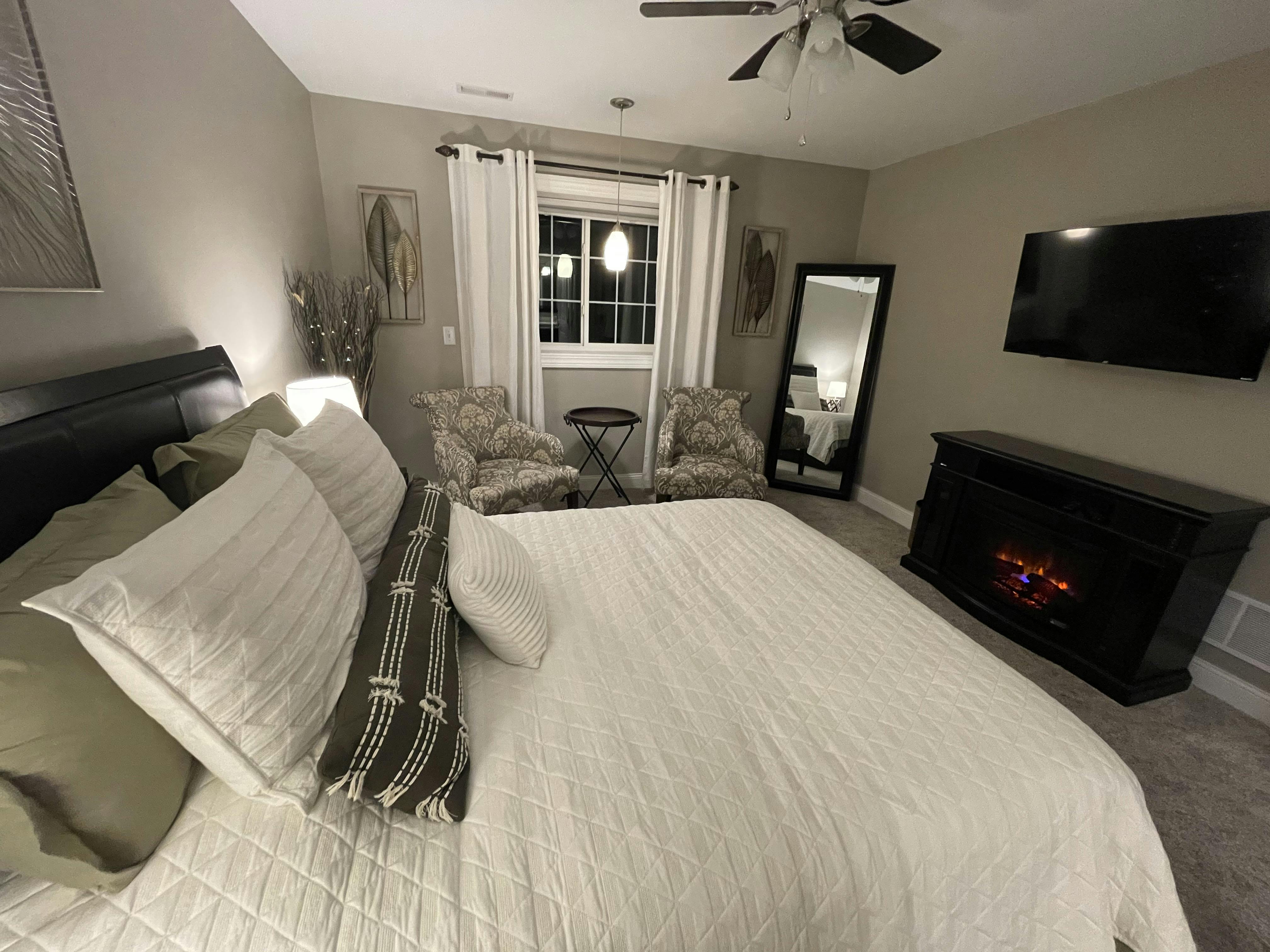Like it's namesake, this room is sure to give you a sense of calm and peaceful relaxation. Set in the timeless colors of Sage and Cream this room has every detail necessary to unhook from the outside world so that you can rest and heal up for tomorrows great adventure. Come home and kick your shoes off and lay back in one of the easy chairs or take a refreshing hot shower in your own private bathroom. If you are not quite ready to give it up for the day you can turn on the flat screen TV and catch up on your favorite teams or just drift off to sleep under the soft glow of the electric fireplace with soft music playing in the background. Breakfast for two included.